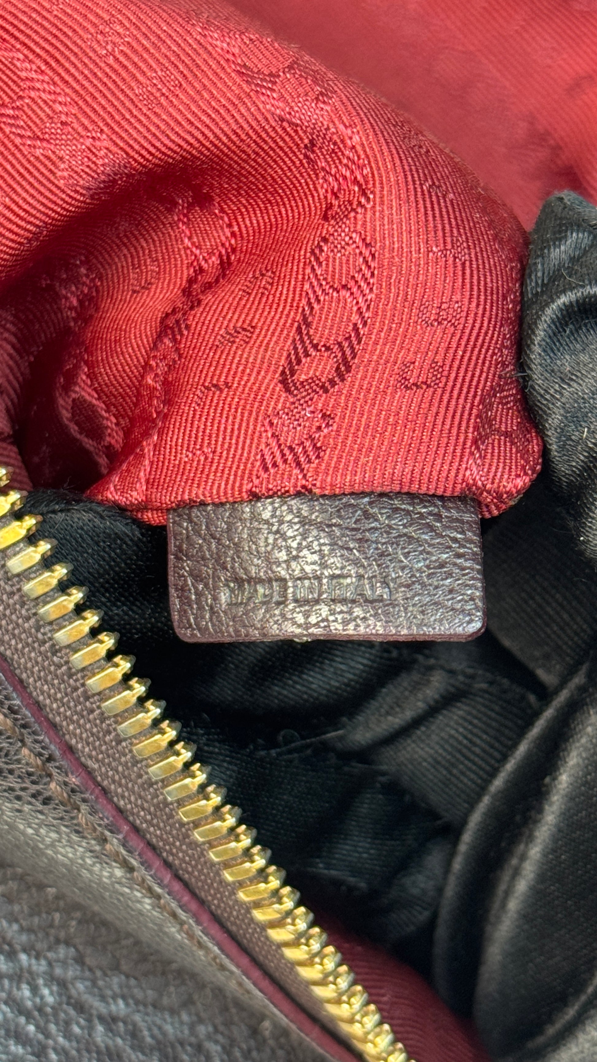 • Interior red jacquard lining is clean with light signs of use
