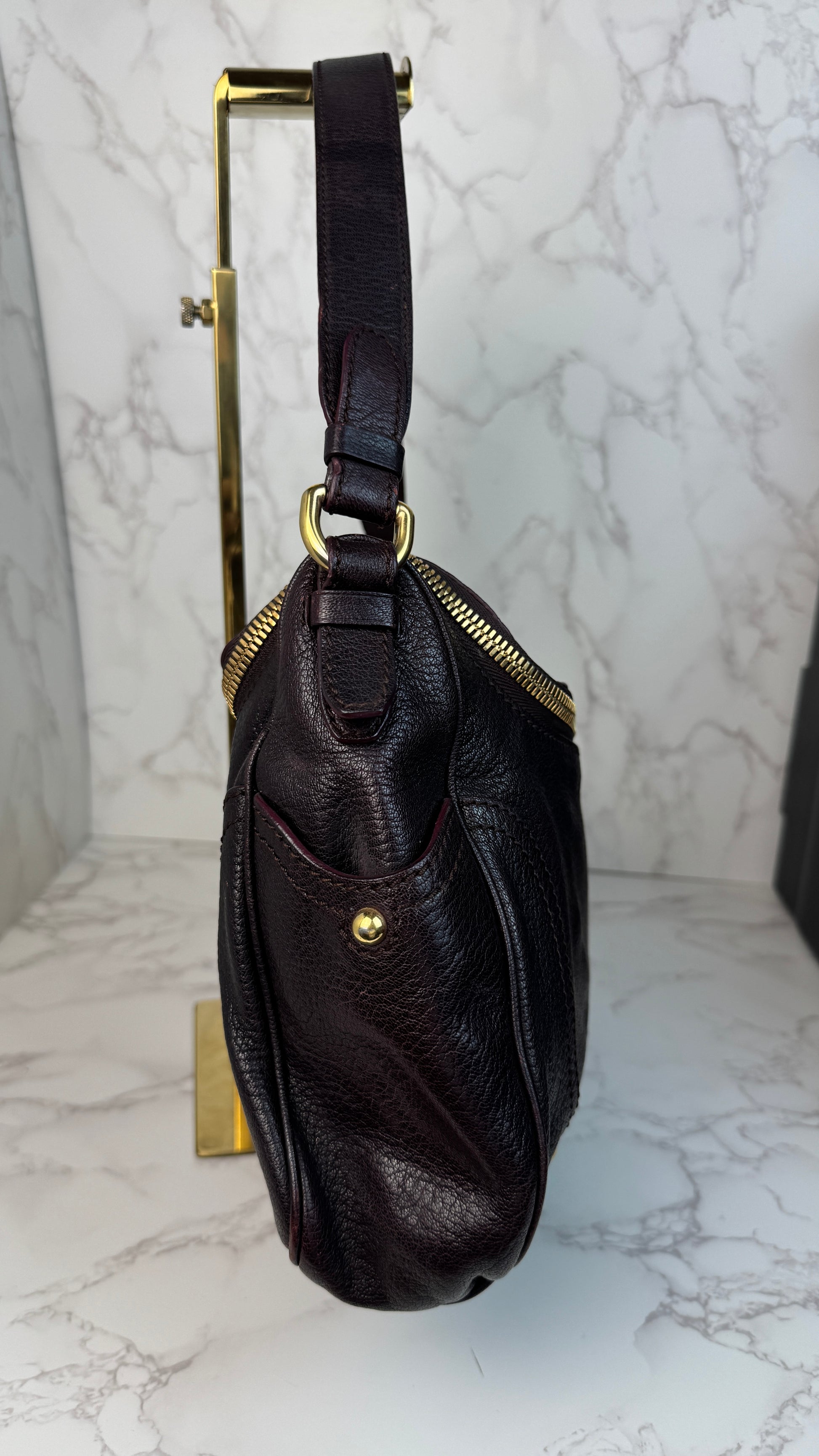 • Leather exterior shows light creasing and gentle signs of use consistent with normal wear