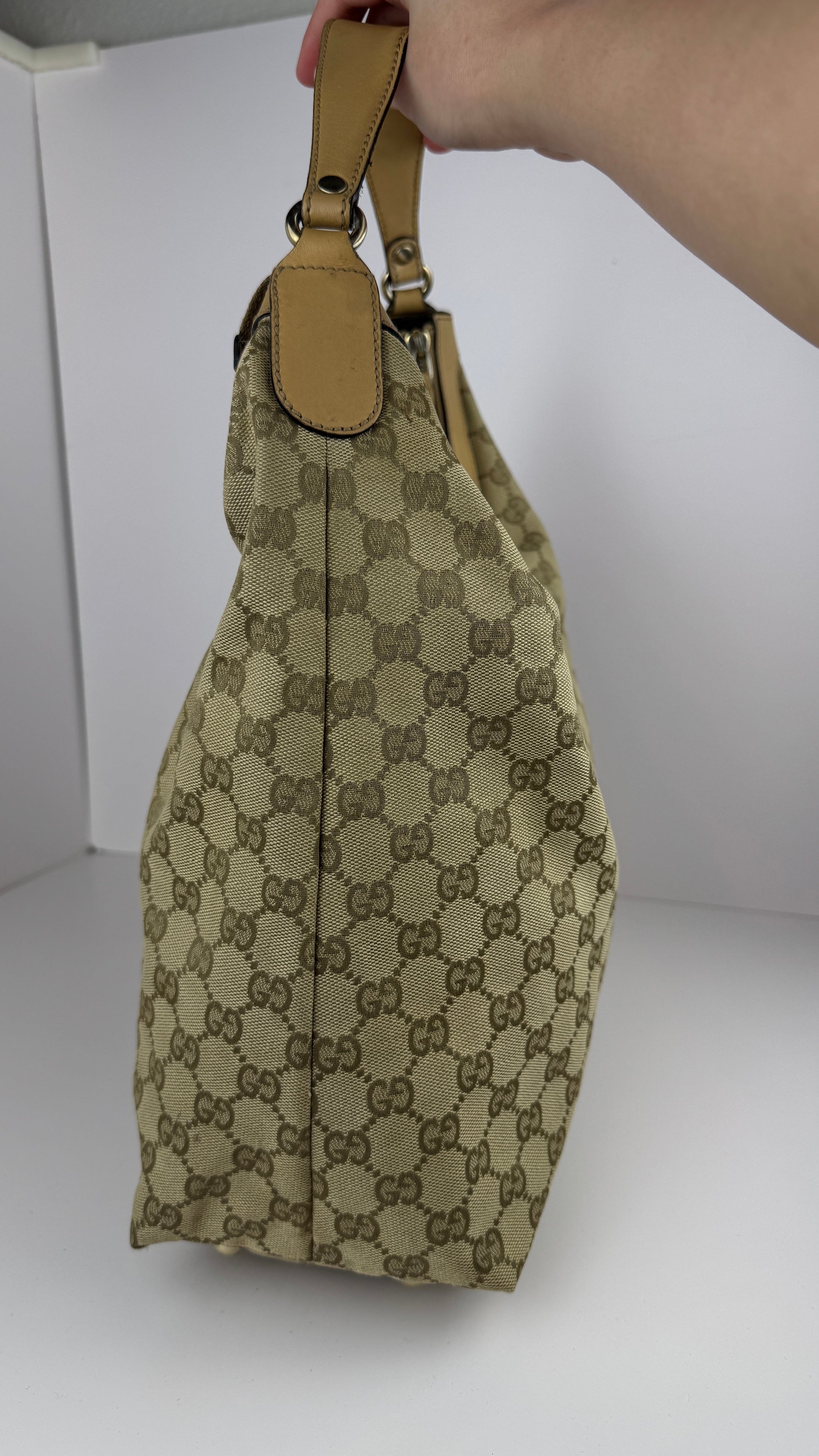 Gucci Beige GG Canvas Horsebit Tassel Hobo