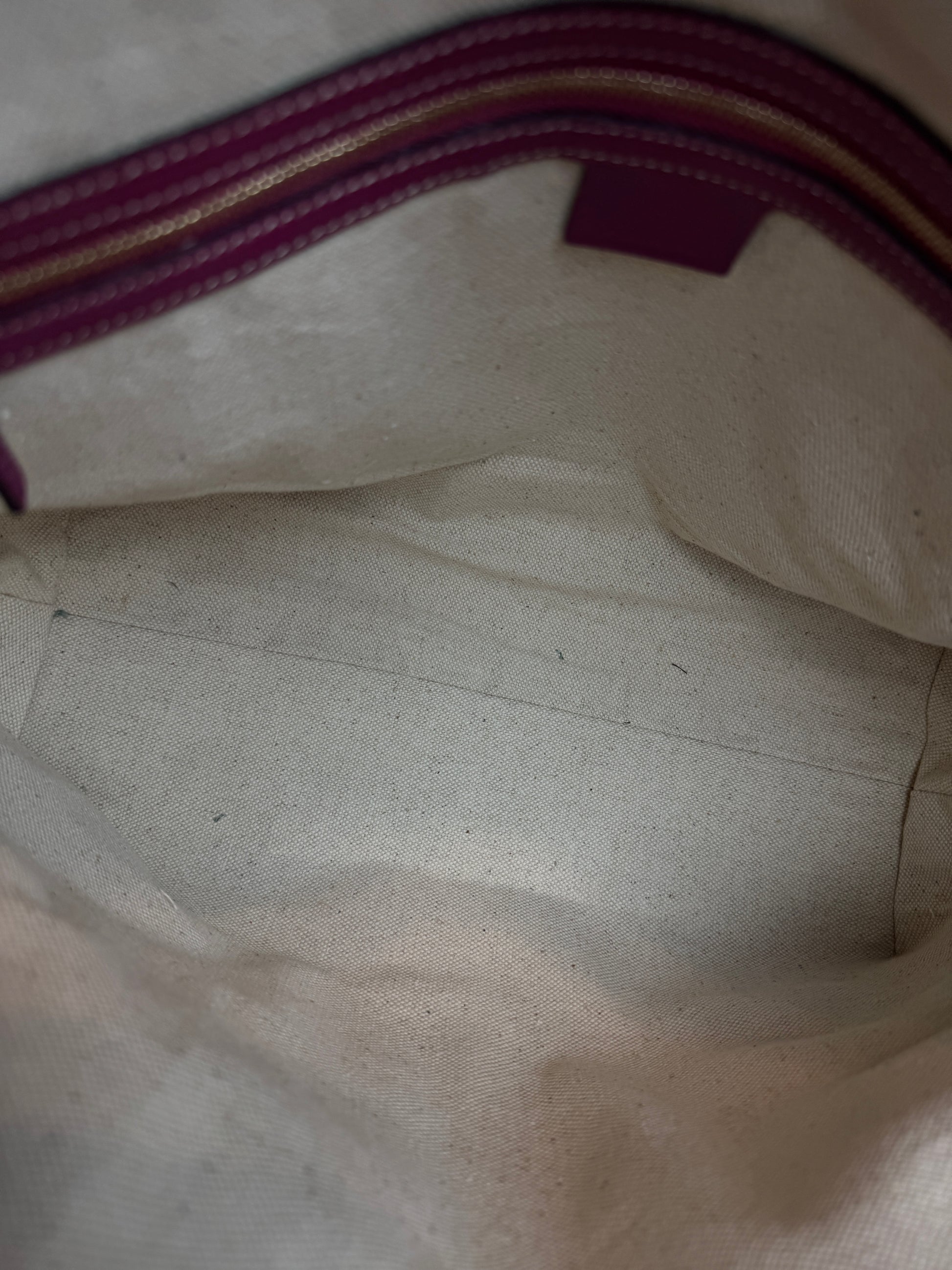 Exterior: Signs of use on leather and Gently used with minor signs of wear. Interior: Clean. Overall, it's a beautiful bag. Hardware has light scratches& discoloration