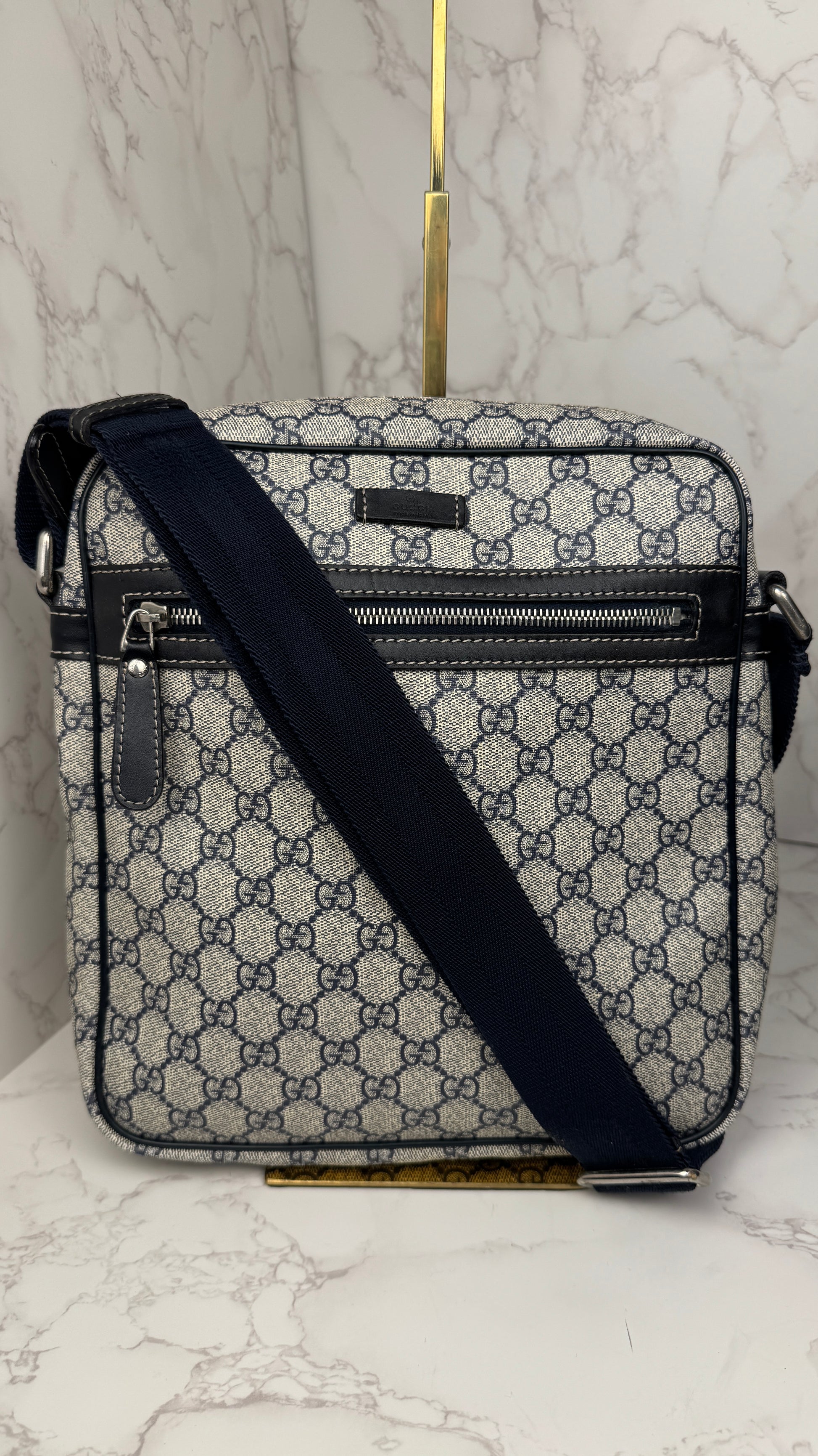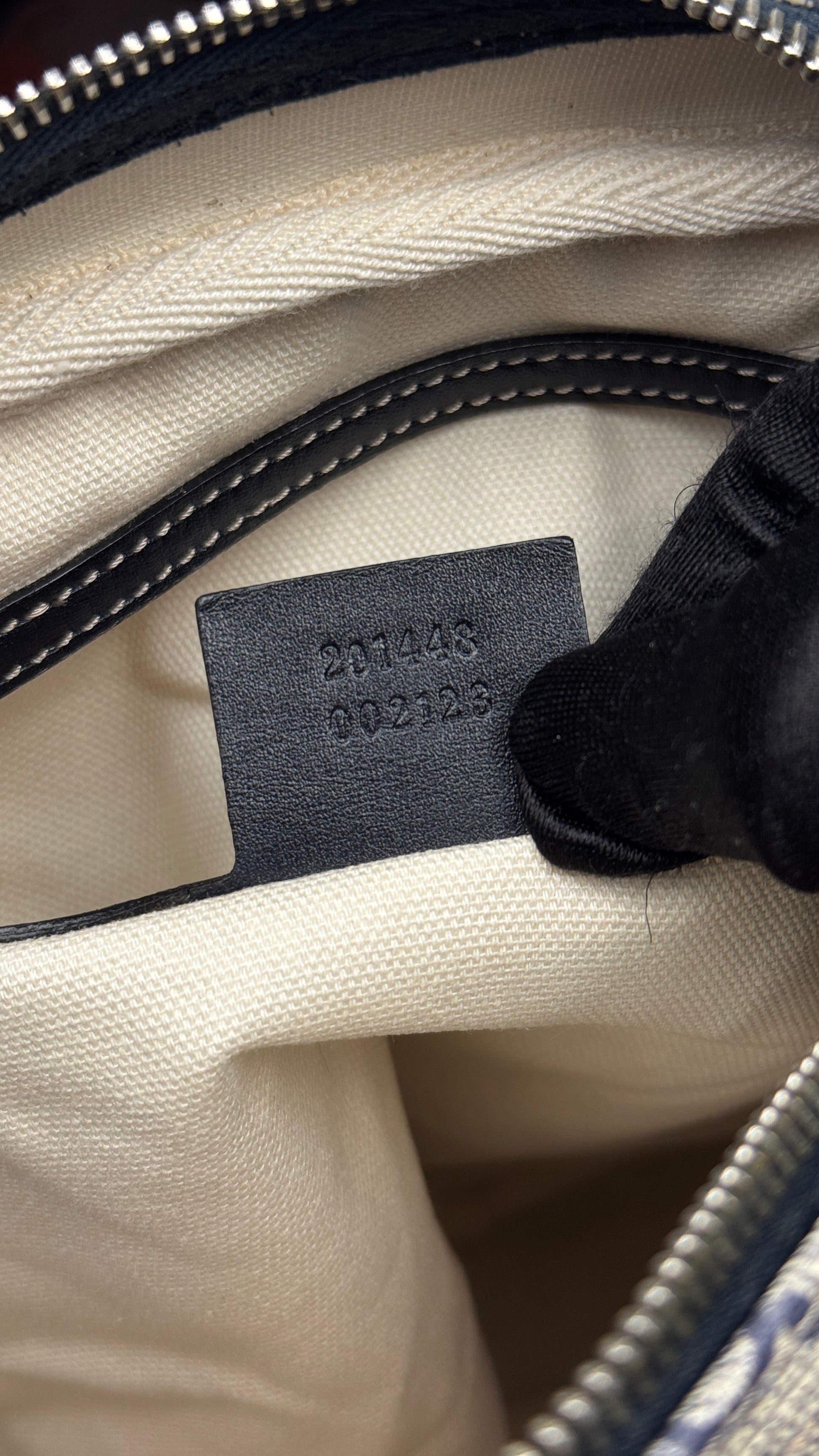 Pre-owned. Light signs of use. Canvas clean, strap and leather trim show minor wear. Interior clean with slight marks. Hardware works well. Overall well kept.
