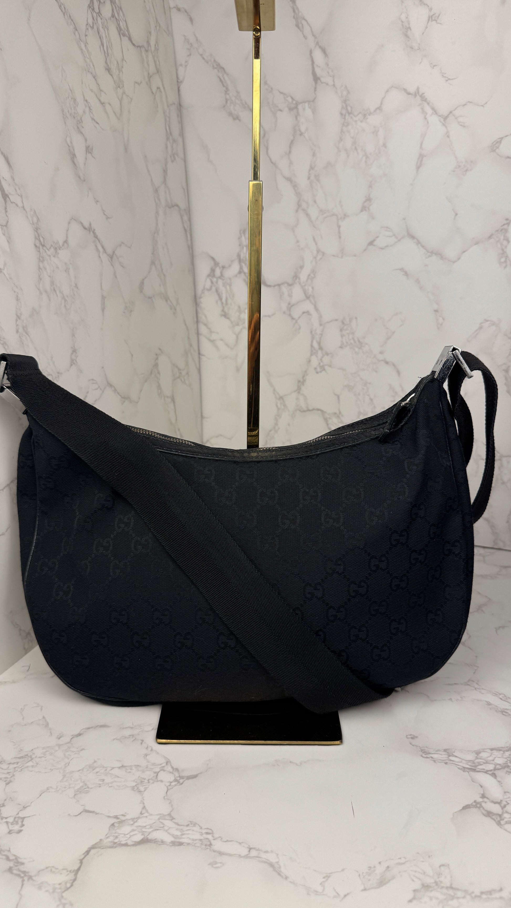 Gucci Half Moon Saddle Hobo and Crossbody GG Canvas Black