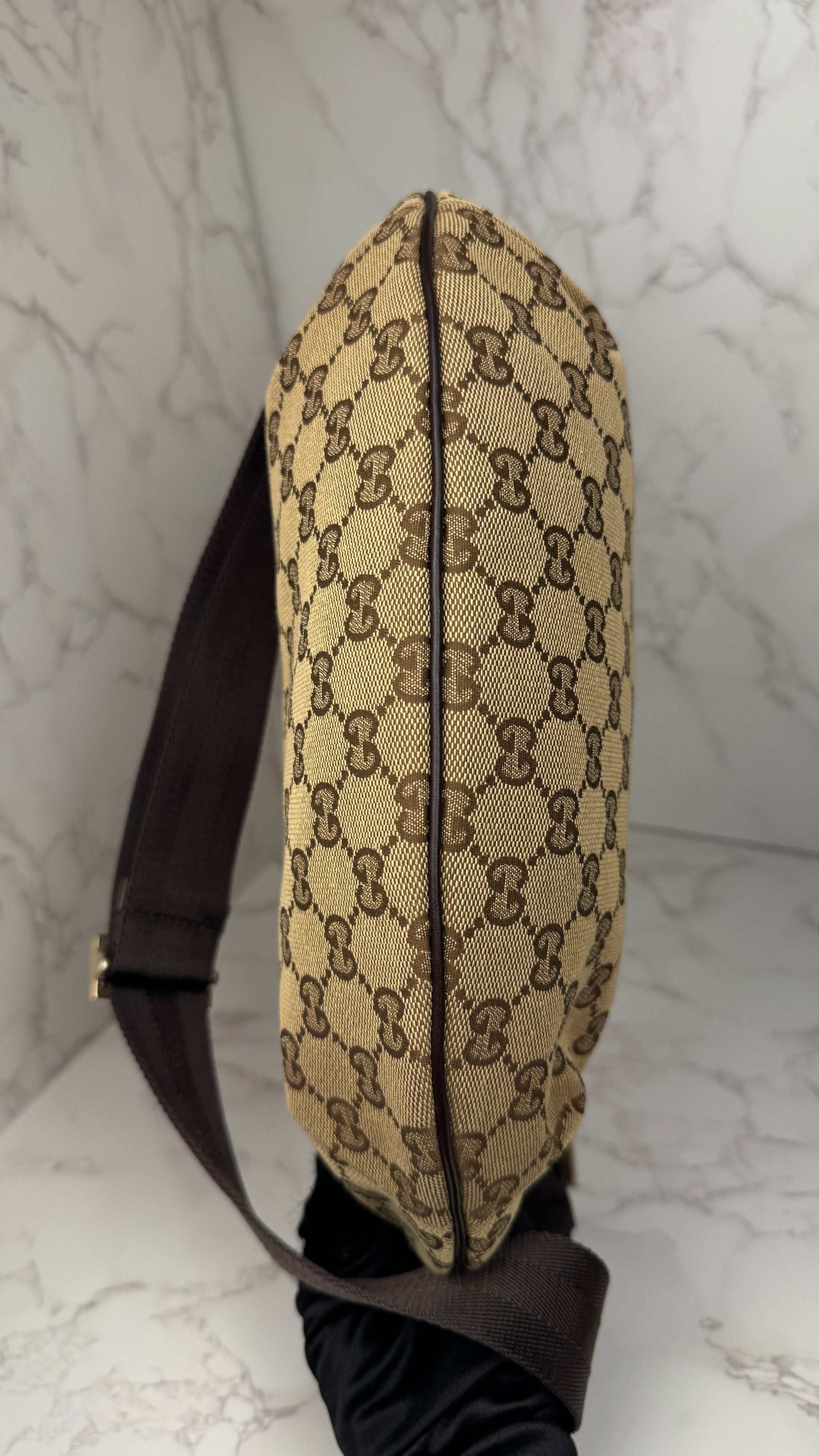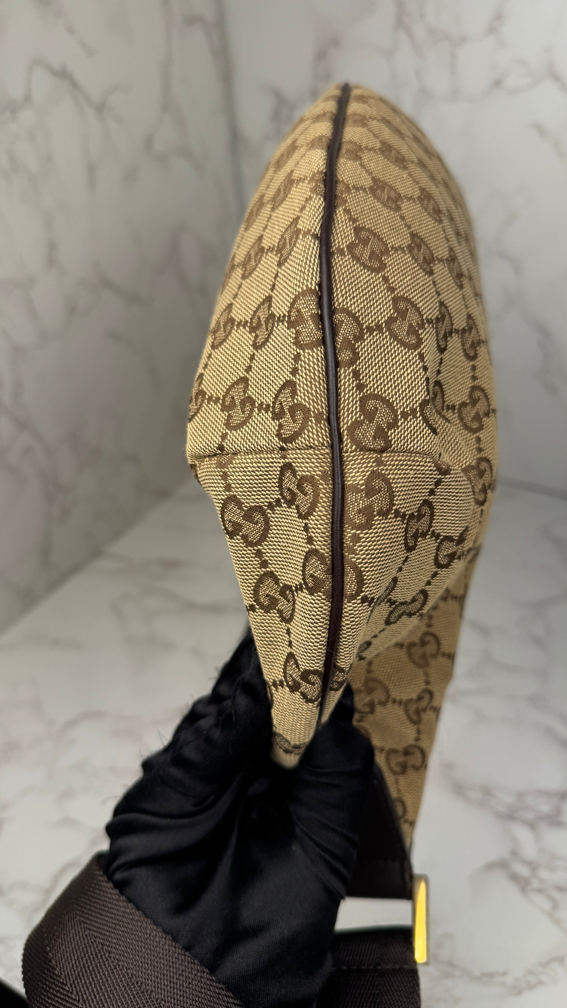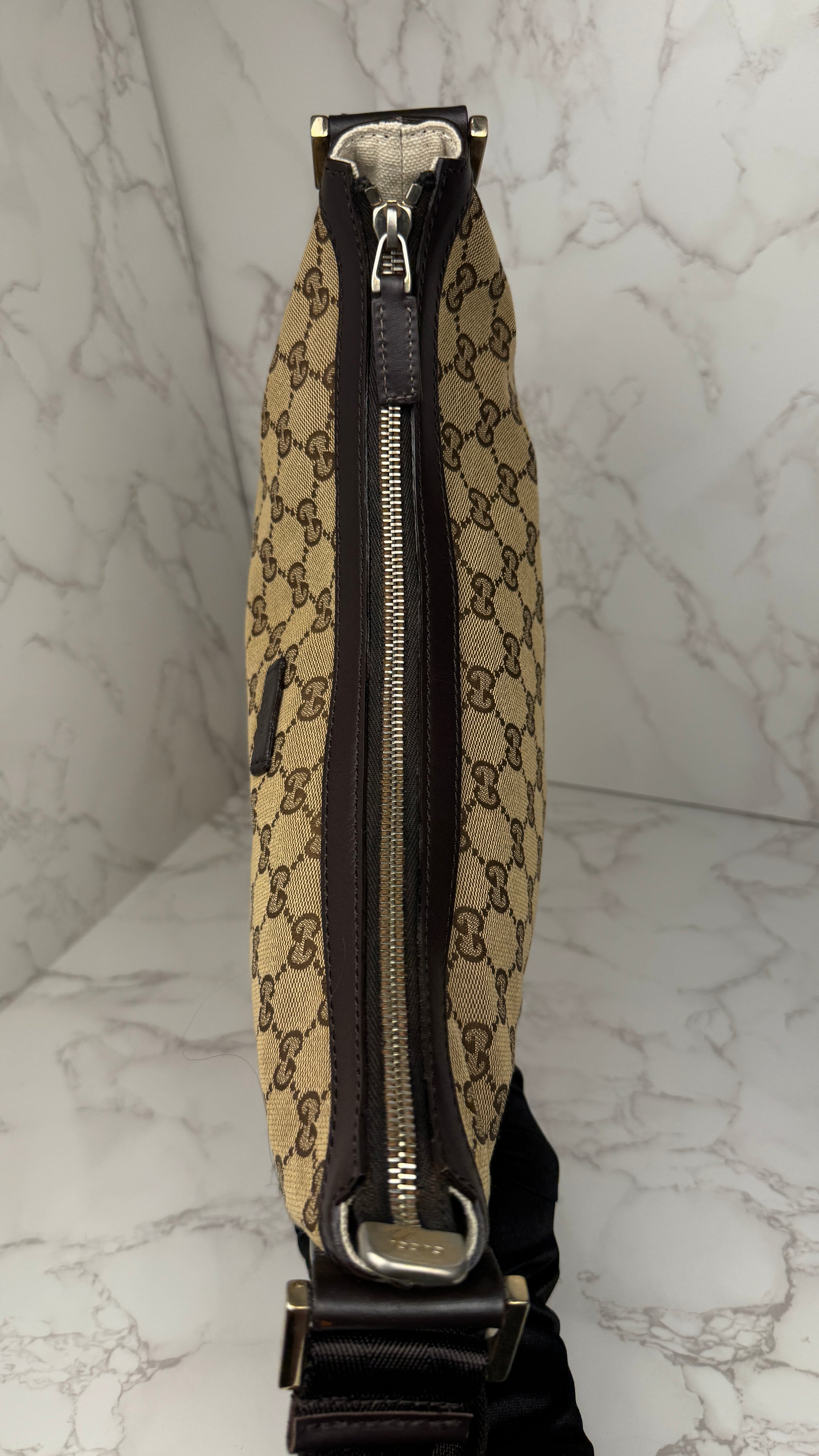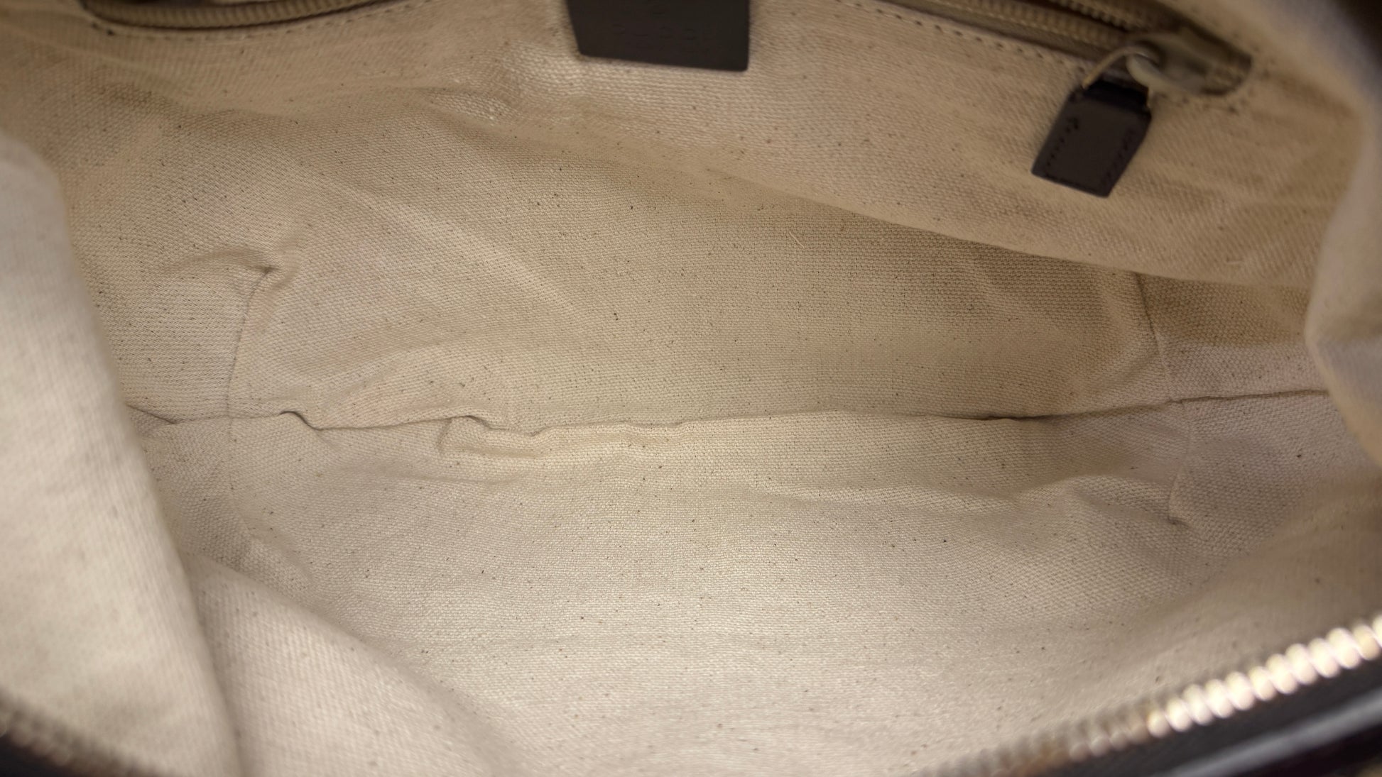 Pre-owned. Canvas shows visible wear. Strap has noticeable wear. Interior shows stains and signs of use. Hardware functional. Overall good, used condition.