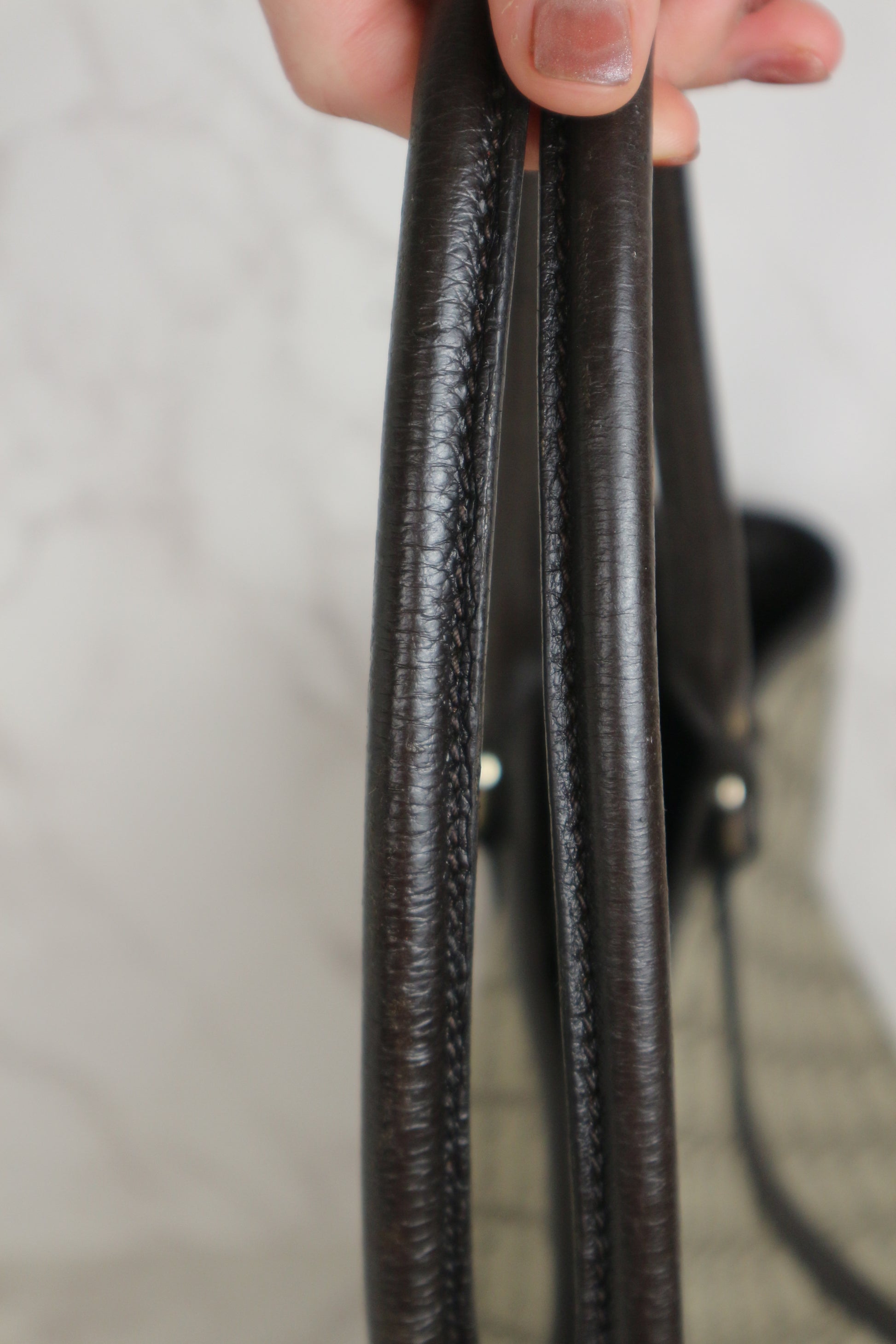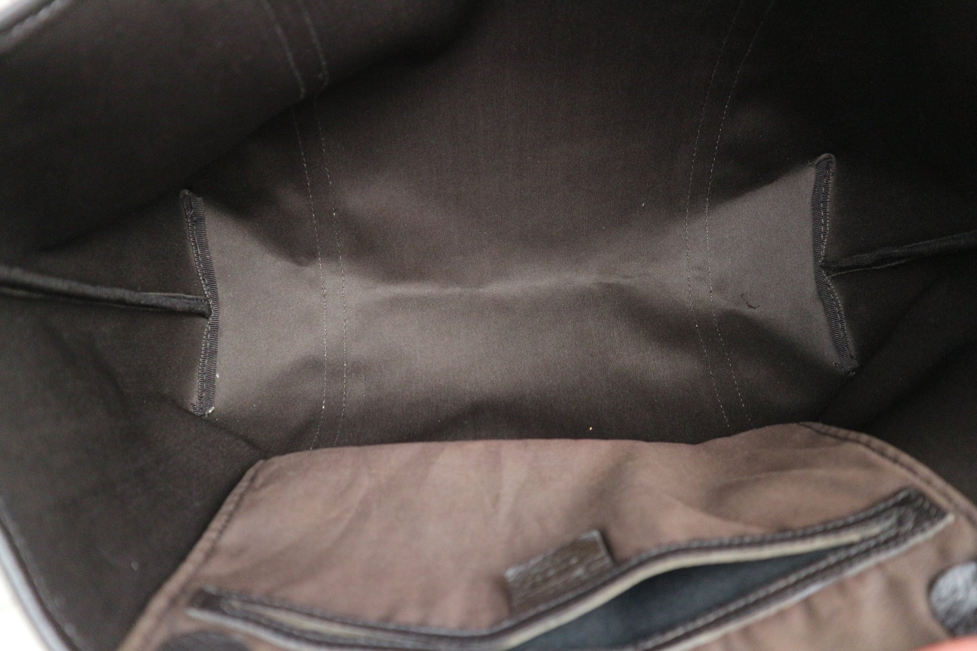 Canvas is clean with no major stains. Leather trim and handles show light wear from normal use. Interior is clean with minor signs of use. Hardware works properly. Overall well-kept and still looks great.