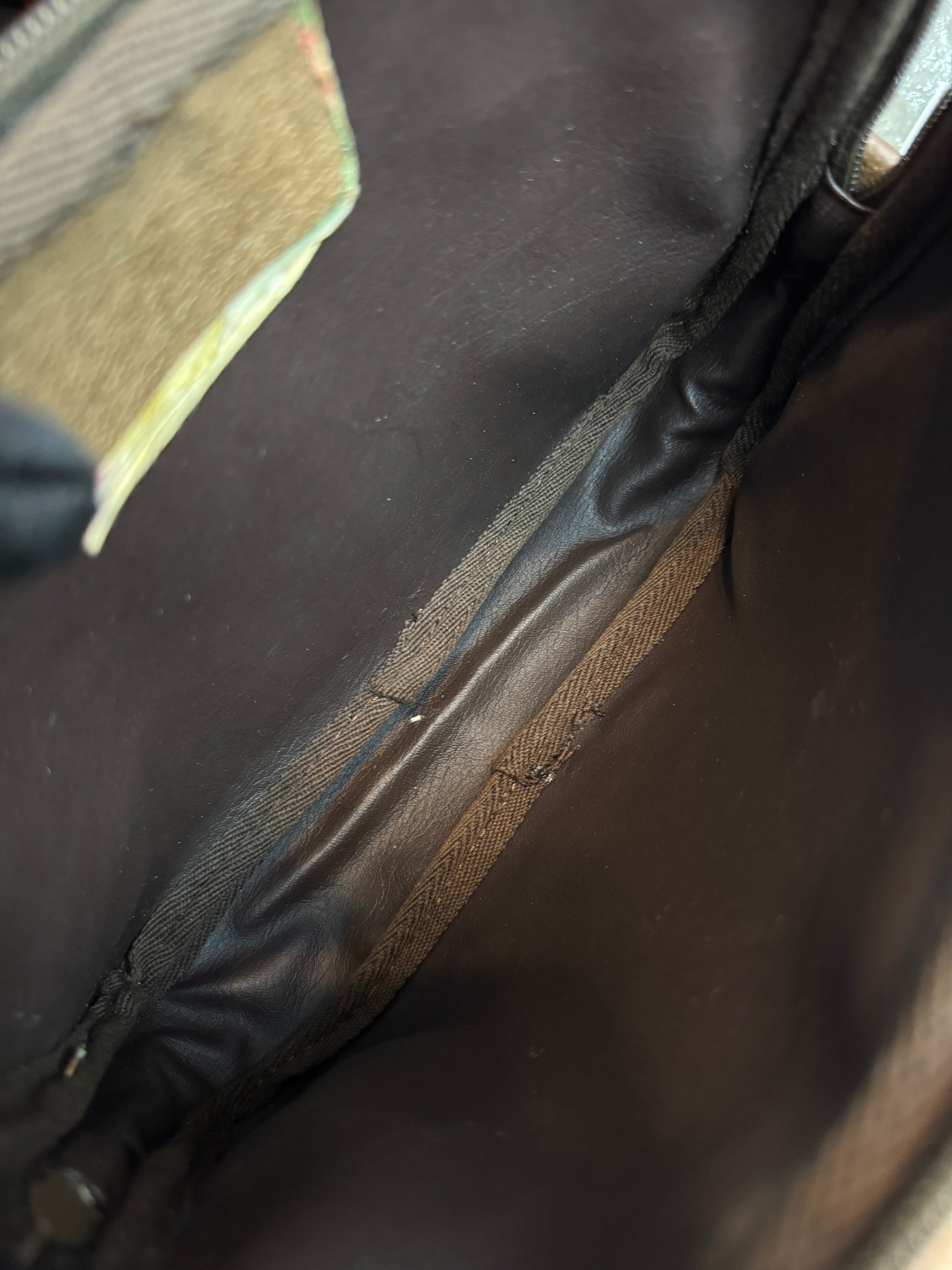 Exterior: Signs of use on leather and Gently used with minor signs of wear. Interior: Clean. Overall, it's a beautiful bag. Hardware has light scratches& discoloration