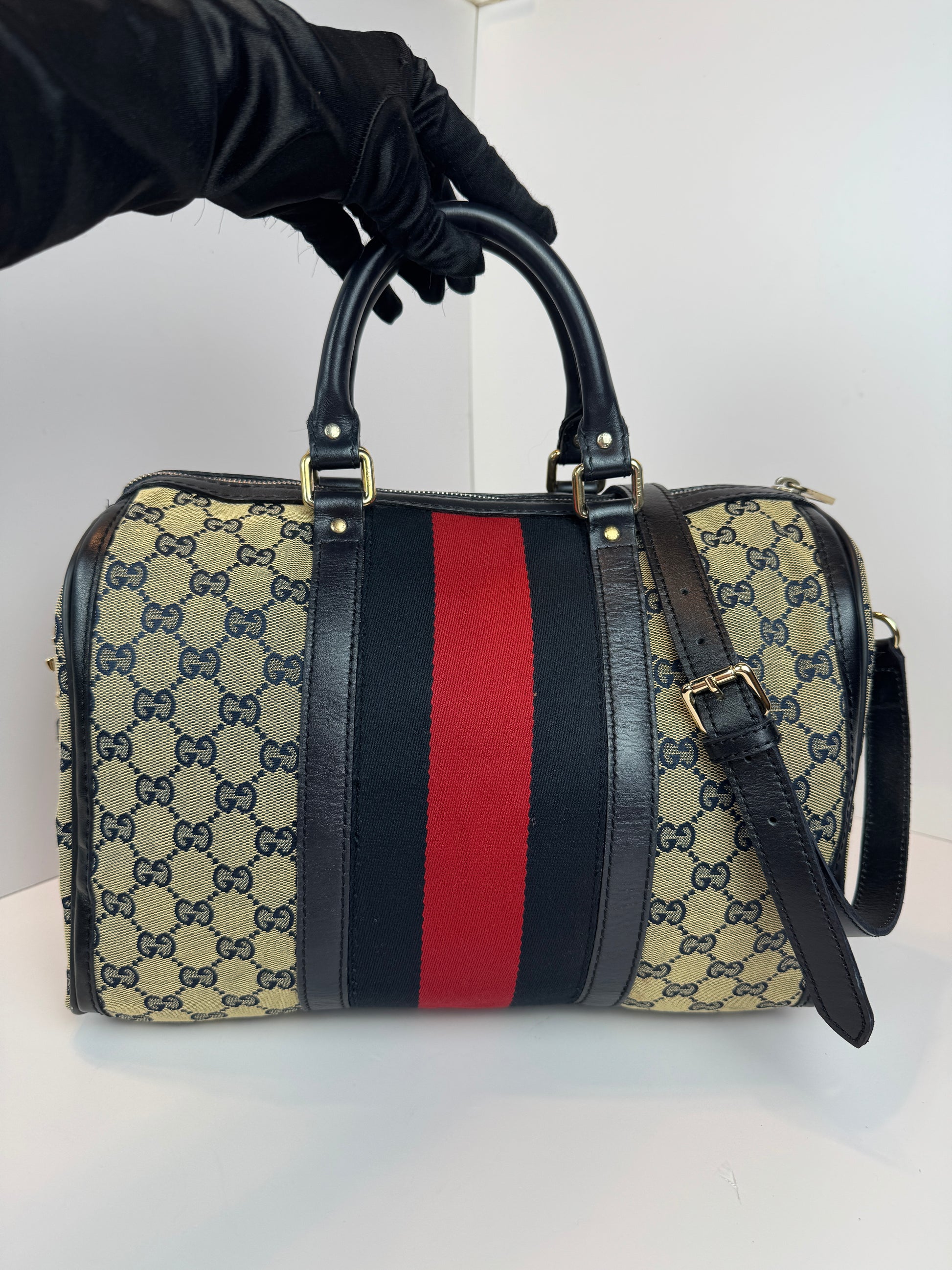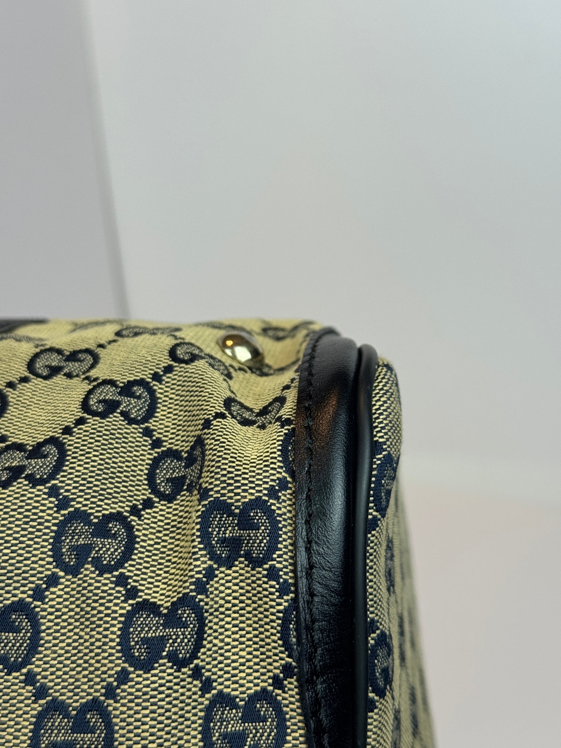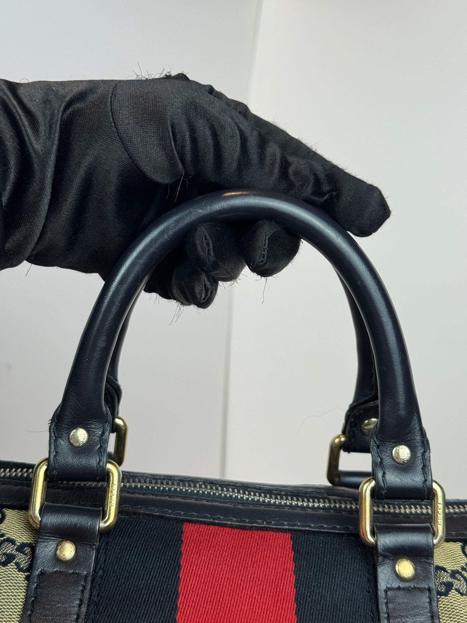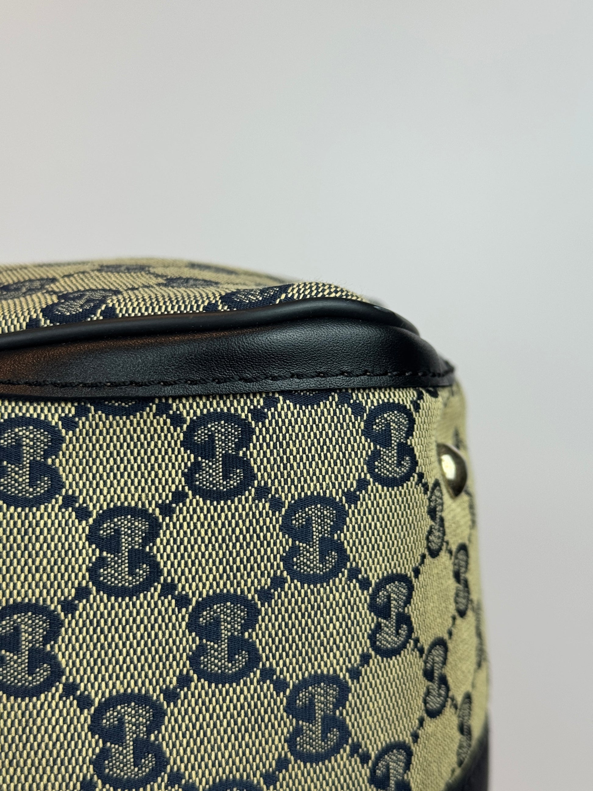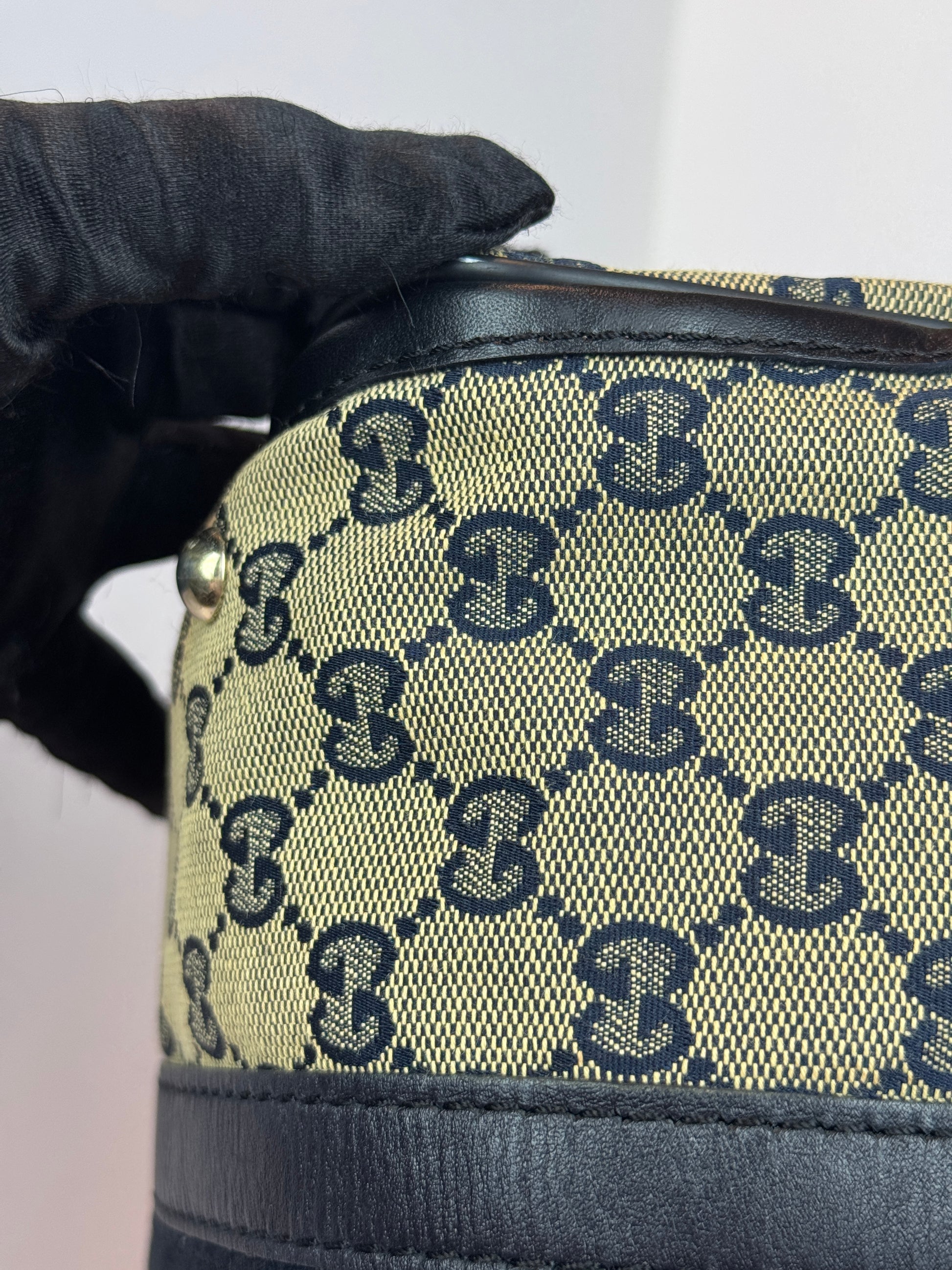 GUCCI Web Boston Navy Blue GG Canvas with strap