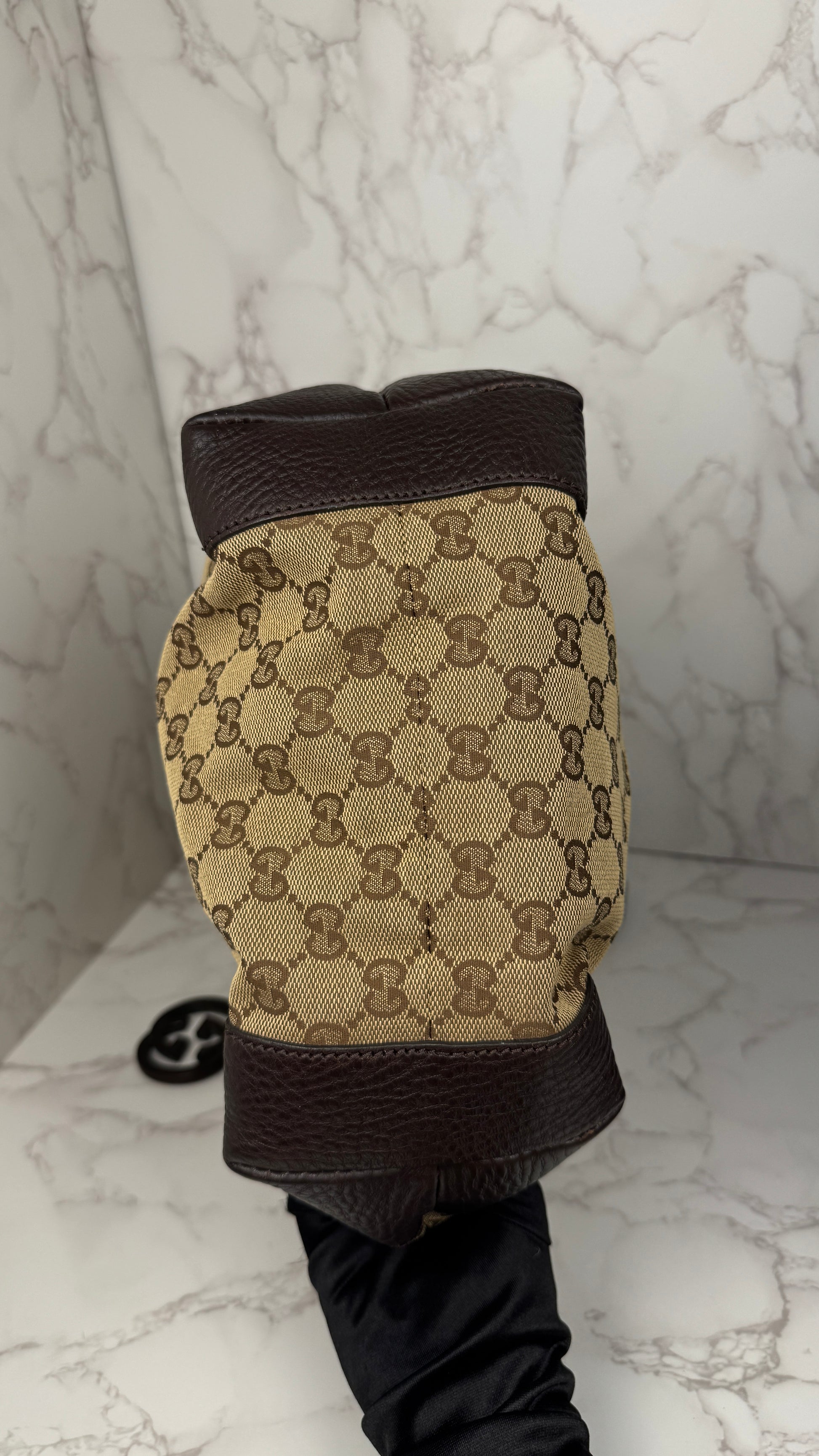 Canvas clean with light wear. Leather handles and trim show minor use. Hardware lightly scratched. Interior clean. Overall well maintained.