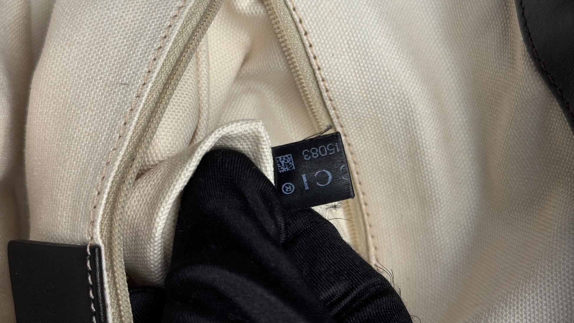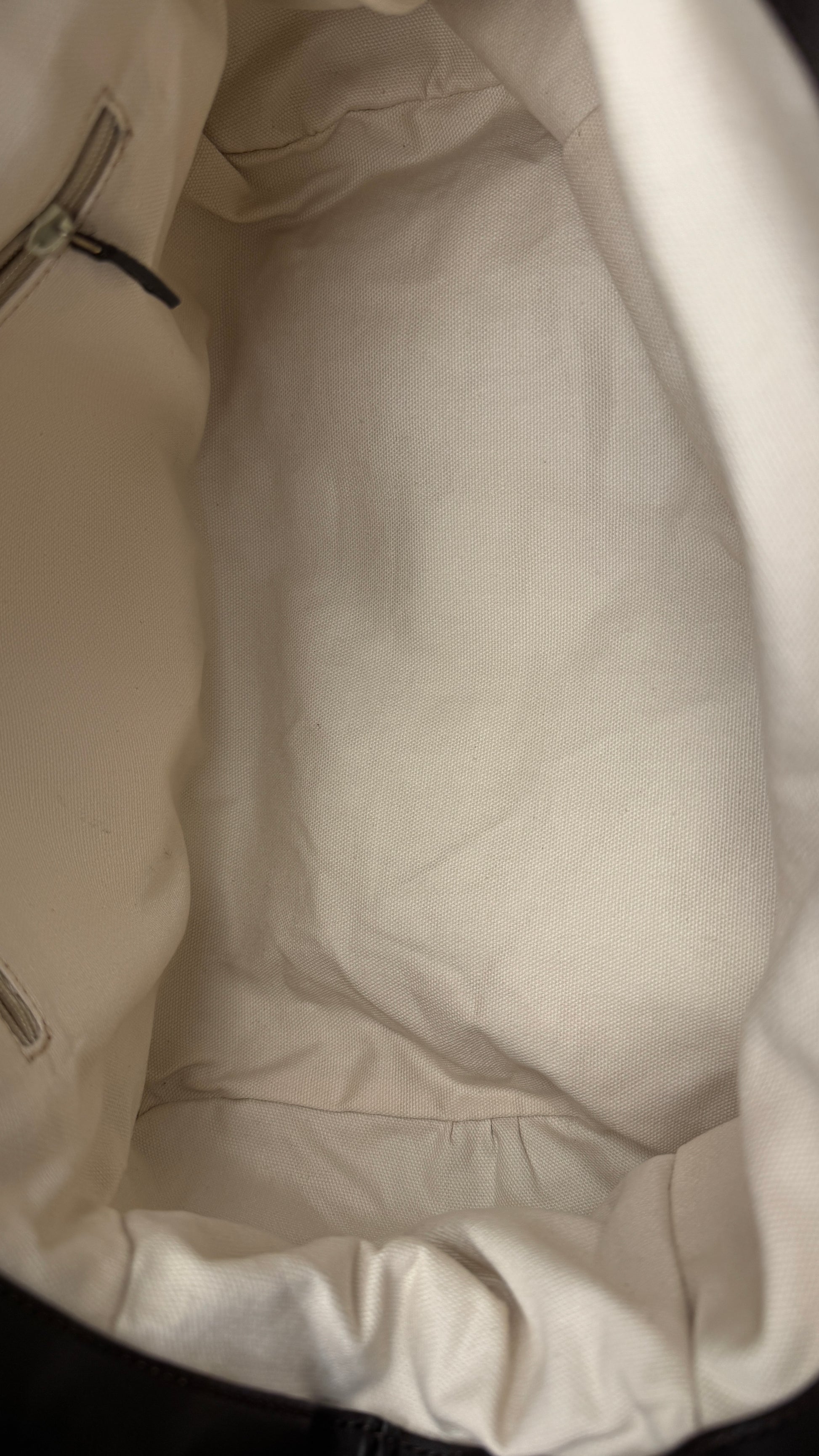 Pre-owned. Canvas clean with light wear. Leather handles/trim show minor signs of use. Hardware works well. Interior clean with slight wrinkles. Overall well kept.